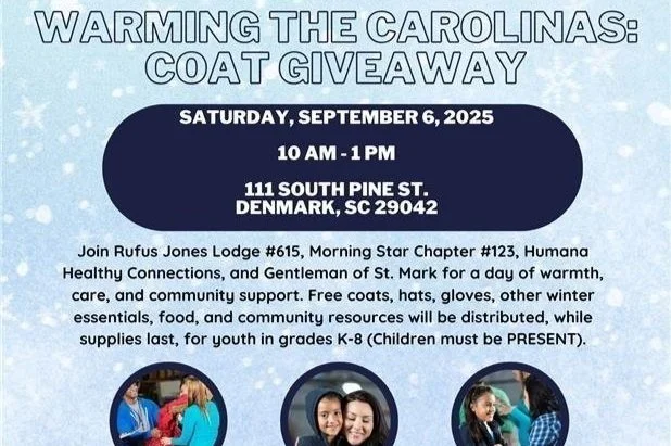 Sep 6 Warming The Carolinas Coat Giveaway Saturday, September 6, 2025 10:00 AM 1:00 PM Google Calendar ICS View Event →